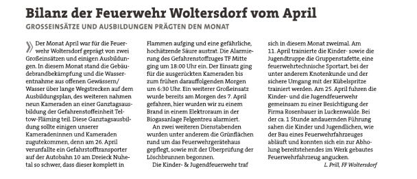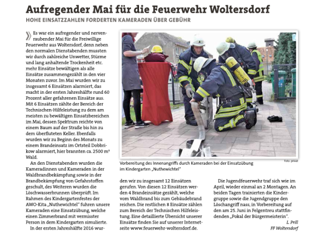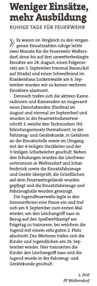 Ein besonderer Dank gilt an die Gebäudeverwaltung der Stadtverwaltung Luckenwalde für die Bereitstellung des Übungskomplexes in der Auguststraße sowie an die Ausbilder M. Richter und P. Hipke für die Planung und Auswertung der Übung.