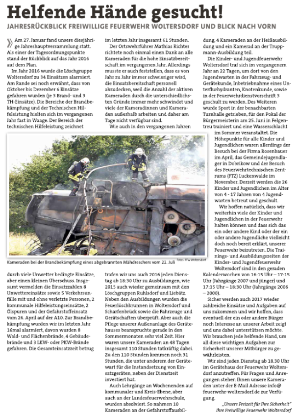 Wir hoffen auch in Zukunft die schon gute Zusammenarbeit mit den Löschgruppen Ruhlsdorf und Schöneweide weiter ausbauen zu können.