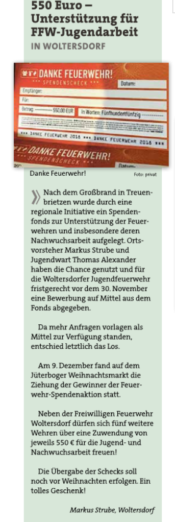 Wir - die Freiwillige Feuerwehr Woltersdorf - möchten Ihnen dennoch ein fröhliches Weihnachtsfest und einen guten Rutsch in das, hoffentlich bessere, Jahr 2021 wünschen.