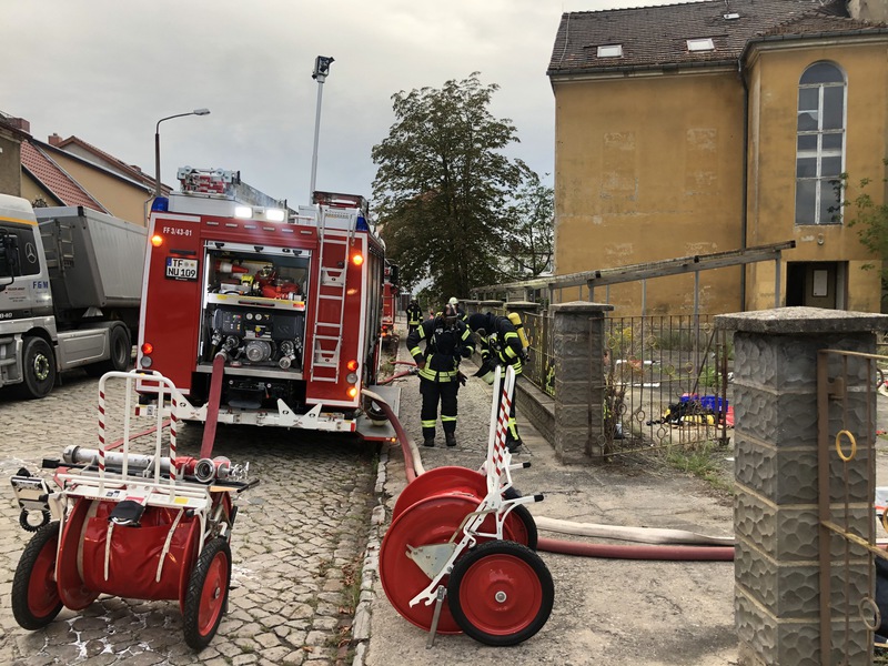 Bei dem Brandobjekt handelte es sich um ein lehrstehendes Gebäude, das Dach war bereits beim Eintreffen durch den Brand eingefallen, somit konnten die Angrifftrupps der Wehren nicht in das brennende Haus vordringen.