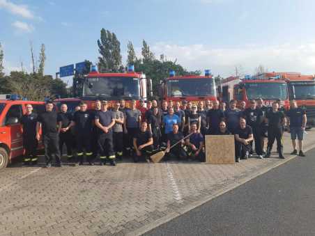 Nach sechs kräftezehrenden Arbeitstagen ging es dann für alle Kameradinnen und Kameraden aus Teltow-Fläming am Mittwoch, den 11. August wieder zurück in die Heimat. Am Standort Woltersdorf wurden sie dann bereits, durch nicht mitgereiste Kräfte der örtlichen Löschgruppe, mit Kuchen, Bratwurst und einem kühlen Getränk herzlich in Empfang genommen. Nach einem gemütlichen Beisammensitzen fielen dann wohl alle Helfer erschöpft in das gemütliche heimische Bett. Am Folgetag traf sich dann nochmals ein Teil um die eingesetzten Fahrzeuge - den Kommandowagen des Zugführers aus Schönefeld und das Hilfeleistungs-Löschgruppenfahrzeug aus Woltersdorf - gründlich zu reinigen und von kontaminiertem Dreck zu entfernen.