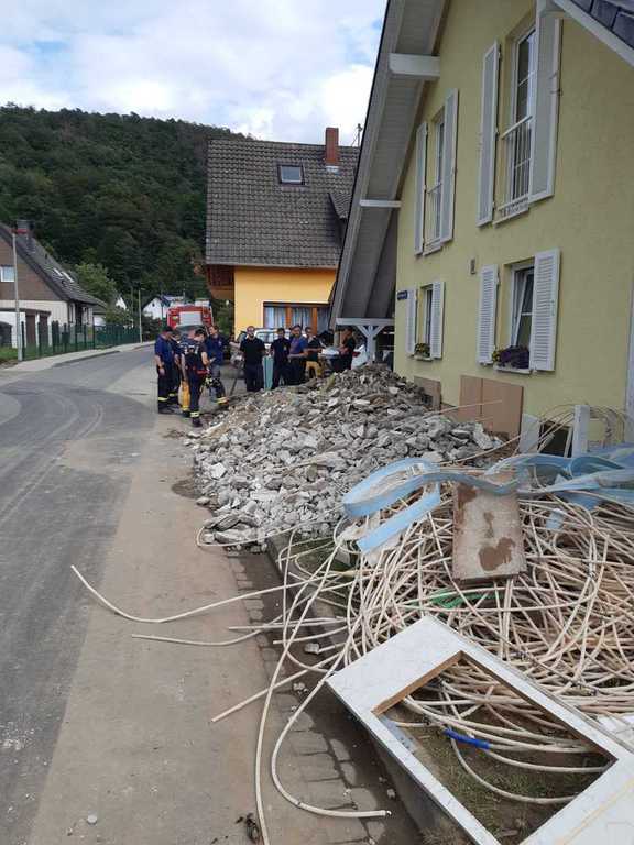 Nach ca. 12 Stunden Fahrt in Kolone, kamen die Kameraden gegen 18:00 Uhr an der zentralen Anlaufstelle am Nürburgring an. Spät am Abend wurden dann die Aufträge und Aufgaben für die nächsten Tage verteilt. Nach einer – sehr kurzen – Nacht am Nürburgring, ging es dann für die gesamte Einheit am darauffolgenden Tag in das, von der Flut, stark betroffene Ahrbrück (Rheinland-Pfalz). Hier wurde in den darauffolgenden Tagen in etwa 50 Häusern Schlamm entfernt, Öltanks ausgepumpt, Heizungsanlagen demontiert, Fußböden und Putz abgestemmt, Schächte gereinigt und beim Aufbau der Trinkwasserversorgung unterstützt. Es waren kräftezehrende Tage für alle eingesetzten Kräfte, nicht nur auf Grund der anstrengenden Arbeiten, sondern auch die Gespräche mit Betroffenen und Hinterbliebenen der Flutkatastrophe wird wohl niemand mehr vergessen. Hinzu kamen die Bilder und Gerüche, die es von Jedem zu verarbeiten galt.